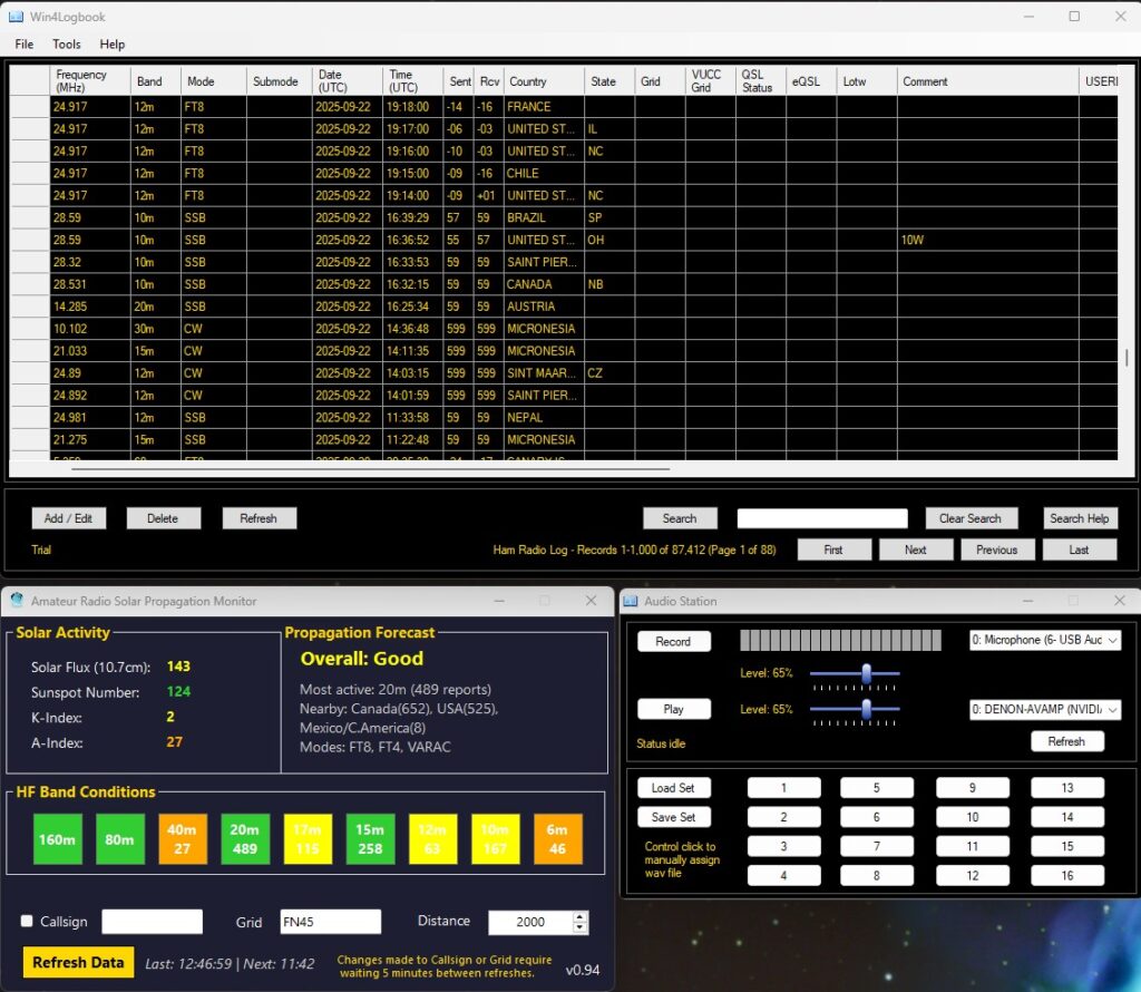 The previous release would take upwards of 10 hours to load 50,000 QSO’s. This release will upload 50,000 QSO’s in about 4 seconds with an additional 6 seconds to update indexes and triggers in the database. Some for deleting multiple records. There will be additional performance improvements in other functions going forward.
